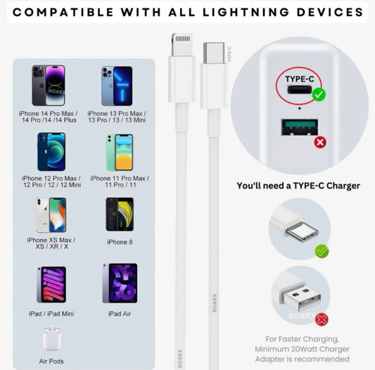 GENFRID Car Lightning Data Cable (Lightning Cable 6 A 1 m Original quality (Compatible with iPhone 6/6S/7/7+/8/8+/10/11/12/13, iPad Air/Mini, iPod, and iOS Devices, White, For IPhone, Ipad & IPod. Fast Charging Lightning Cable, One Cable)