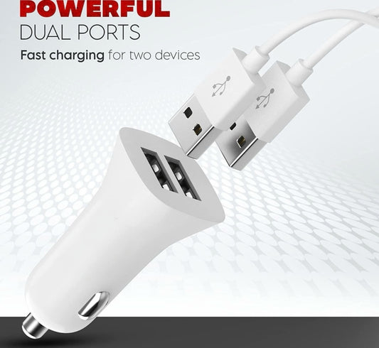 GENFRID Turbo Car Charger 3.4 Amp Qualcomm Certified (White, With USB Cable)