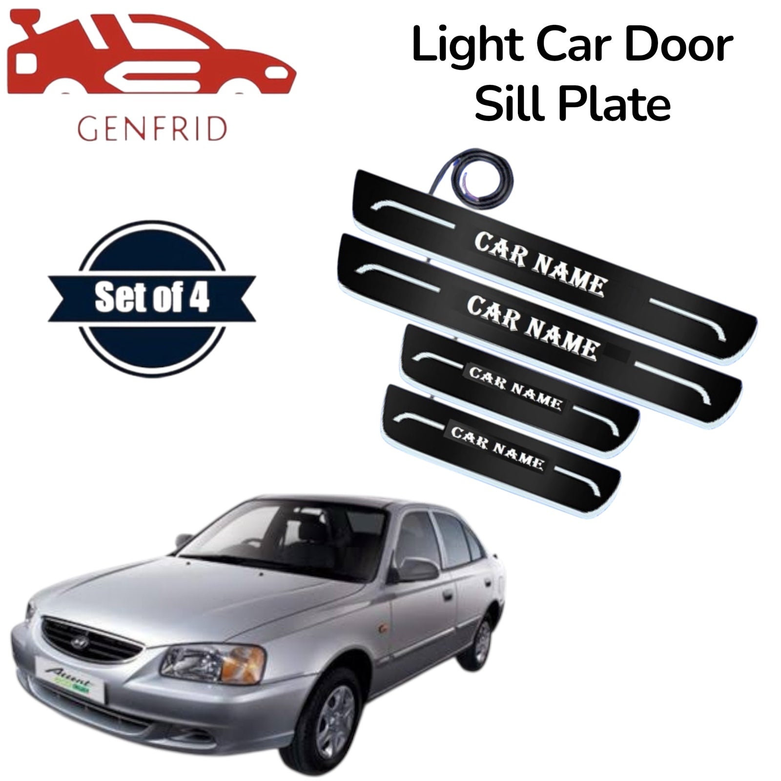 Genfrid Car Door Foot Step Led Sill Plate, Door Sill Plate For Hyundai Accent