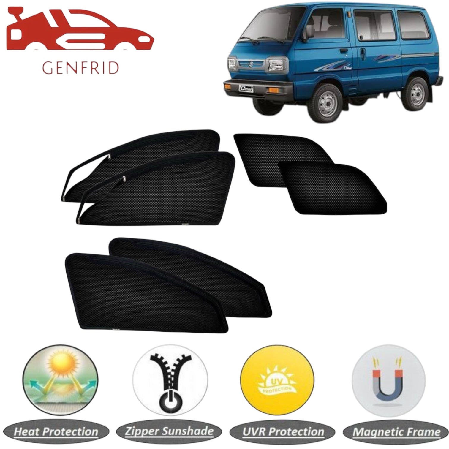 Genfrid Car Sunshade/Car Side Window Shades For Maruti Omni (Zipper)